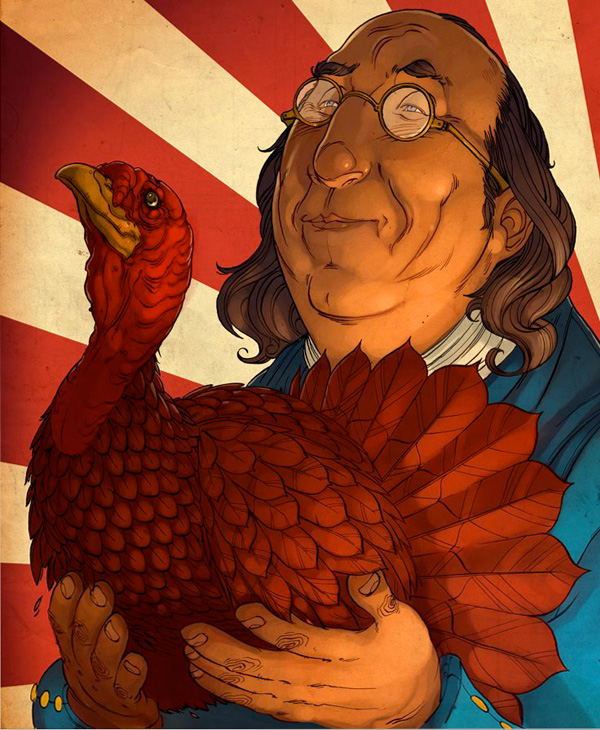 He does not get his Living honestly…[he] is too lazy to fish for himself.” About the turkey, Franklin wrote that in comparison to the bald eagle, the turkey is “a much more respectable Bird, and withal a true original Native of America…He is besides, though a little vain & silly, a Bird of Courage.”